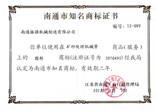 江蘇振強機械科技股份有限公司 >> 公司簡介 >> 資質證書 >> 南通市知名商標證書